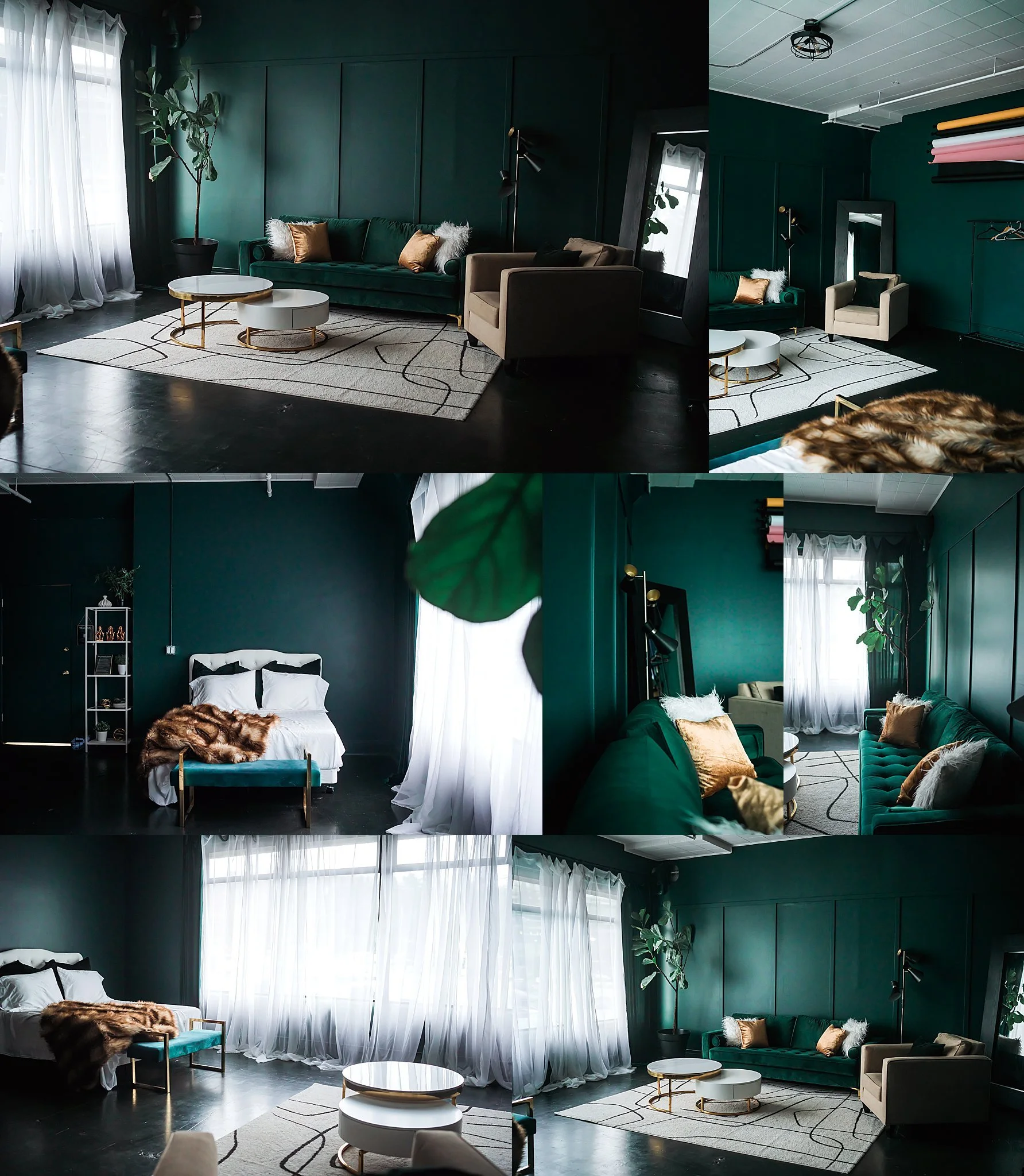 Our private Seattle boudoir studio isn’t one room with a bed and a window. It’s an entire experience. The Penthouse brings in that raw, industrial feel: concrete, texture, shadows, depth. It’s the kind of space that gives your images an edge without trying too hard. Then you’ve got The Greenroom, flooded with natural light, clean, elevated, and a completely different energy in the same building.